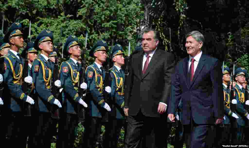 Президент Таджикистана Эмомали Рахмон прибыл в Бишкек с официальным двухдневным визитом. Сегодня в государственной резиденции «Ала-Арча» Рахмона принял глава КР Алмазбек Атамбаев. После двусторонней встречи пройдет первое заседание кыргызско-таджикского межгосударственного совета. Ожидается подписание двусторонних документов и пресс-конференция для журналистов. Фотографии пресс-служб президента и правительства КР. "Азаттык", Кыргызская служба РСЕ/РС