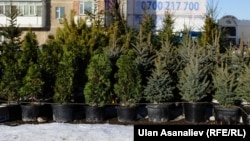 Эркебек торгует елями не первый год, у него в продаже только живые, в горшках. По его словам, торговля продолжается до мая. Многие берут хвойные деревья не только для Нового года, но и для посадки. В основном покупают тянь-шаньскую ель, часто просят карликовые хвойные деревья, которые не вырастают до больших размеров.