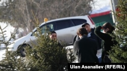 Эркебек сначала пожаловался на плохую торговлю из-за кризиса, но потом уверенно сказал, что сезон только начинается, да и до Нового года еще время есть. Пока мы беседовали, подъехали долгожданные клиенты, но покупать ель они не стали, лишь приценились. По словам нашего собеседника, обрезанные хвойные они не продают – запрещено законом. Но у других продавцов мы все-таки увидели парочку таких деревьев.