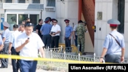 Оцепленная территория у посольства Китая в Кыргызстане, где прогремел взрыв. Бишкек, 30 августа 2016 года.