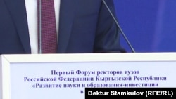 Форум ректоров 27 марта, в котором участвовали главы 40 российских и 31 кыргызстанского вузов, открыл сам президент Сооронбай Жээнбеков. Он выступил на тему современных методов образования и реформы в этой сфере.
