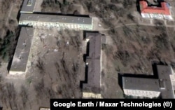 Здание роддома со следами обстрела хорошо видно и на спутниковых снимках, сделанных 29 марта.