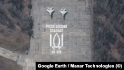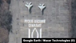 Спутниковые снимки аэродрома в Василькове, где базируется 40-я бригада, показывают, что у украинских летчиков, противостоявших превосходящим их силам соперника, была не только отвага, но и чувство юмора. Вскоре после начала войны с помощью трафарета и краски они нанесли на взлетно-посадочную полосу надпись, перефразирующую другую ставшую легендарной фразу, про "русский военный корабль", сказанную по рации украинским пограничником на острове Змеиный в ответ на предложение сдаться.