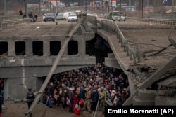 Мост, соединявший города Ирпень и Буча c окраинами Киева, был взорван самими украинскими военными 25 марта – чтобы помешать продвижению российских войск в сторону украинской столицы. Несмотря на это, он еще долго оставался единственной артерией, по которой люди из оккупированных городов Киевской области могли спастись от зверств российской армии. Фотографии беженцев с детьми, раненых и пожилых людей, которых приходилось переносить через реку по обломкам моста на носилках, облетели весь мир. Сейчас в Украине обсуждают строительство на этом месте мемориала.