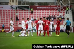Футболисты сборной Кыргызстана. 16 января 2018 г. Объединенные Арабские Эмираты. Photo: Gulzhan Turdubaeva (RFE/RL)