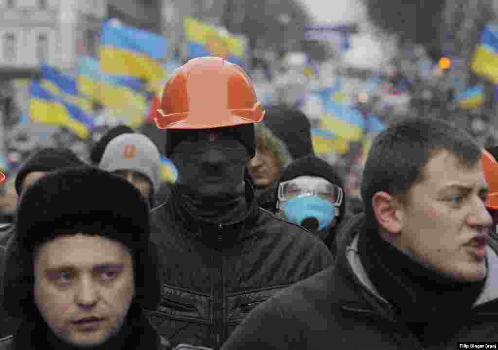 Группа демонстрантов на пути к площади Независимости в Киеве, 1 декабря 2013 г.