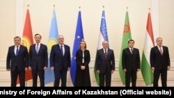 Министры иностранных дел стран Центральной Азии и представитель Евросоюза по внешней политике Федерика Могерини на конференции министров иностранных дел ЕС – Центральная Азия в Самарканде. 10 ноября 2017 года.
